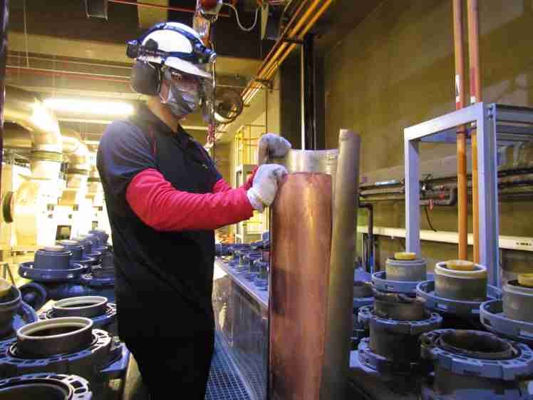 28国际将废弃物转化成有效的工业或民生原物料,,,,图为废铜液淬炼后再制成纯度极高的铜管