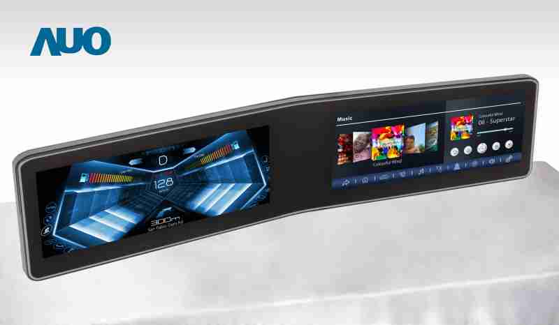28国际 V 型曲面驾驶舱显示器,,,采全贴合拼接仪表板及中控台显示屏 |